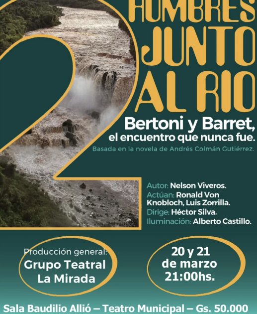 En paralelo, la sala Baudilio Alió del mismo teatro propone un cruce entre historia y ficción con “Dos hombres junto al río”. La obra imagina un encuentro improbable entre el escritor anarquista Rafael Barrett y el científico Moisés Bertoni en tierras del Alto Paraná. Bajo la dirección de Héctor Silva y con las actuaciones de Ronald Von Knobloch y Luis Zorrilla, la pieza construye un diálogo que trasciende el tiempo y pone en tensión ideas, utopías y miradas sobre el mundo. Subirá a escena hoy y mañana a las 21:00. Las entradas cuestan G. 50.000 y se adquieren allí mismo.
