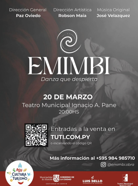 Así, el Teatro Municipal Ignacio A. Pane se ilumina con “Emimbi”, una pieza de danza clásica contemporánea que surge del diálogo creativo entre Paz Oviedo y Robson Maia. La obra de danza independiente integra técnica clásica y contemporánea en una propuesta escénica actual y desafiante, que invita a la reflexión. La función es única, hoy viernes 20 de marzo a las 20:00 y las entradas tienen un costo de G. 100.000. Se pueden adquirir a través de Tuti.